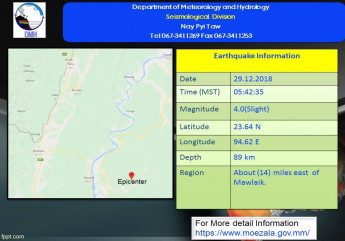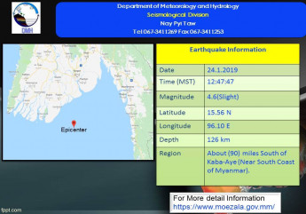 ဒီေန႔ မြန္းလြဲပိုင္းမွာ ရန္ကုန္တိုင္းထဲမွာ ငလ်င္ငယ္တခု လႈပ္သြားတယ္လို႔ မိုးေလဝသနဲ႔ ဇလေဗဒၫႊန္ၾကားမႈ ဦးစီးဌာနက ထုတ္ျပန္ပါတယ္။