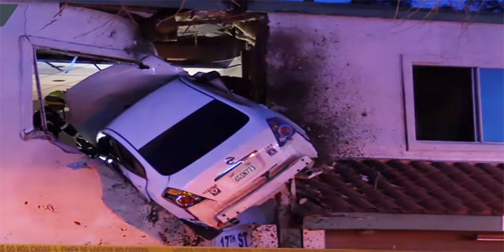 ဆန္တာအန္နာေဒသတြင္း သြားဘက္ဆိုင္ရာေဆးပညာ အေဆာက္အအံုရဲ႕ အျပင္ဘက္ ကြန္ကရစ္နံရံကို ထိုးေဖာက္ဝင္တိုက္မိခဲ့တဲ့ နစ္ဆန္း ဆီဒင္ကားဟာ အရွိန္မထိန္းႏိုင္ဘဲ ေလထဲမွာ ေပ ၆၀ ေလာက္ထိ ေျမာက္တက္ခဲ့ၿပီးမွ ခုလိုတိုက္မိခဲ့တာ ျဖစ္တယ္လို႔ ရဲေတြက ေျပာပါတယ္။