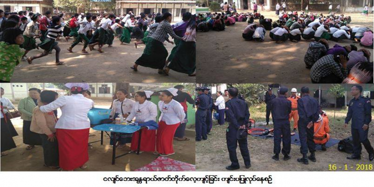 ဇန္န၀ါရီ ၁၆ ရက္က လယ္ေဝးၿမိဳ႕နယ္၊ သေျပပင္ အ.ထ.က (၃) ေက်ာင္းမွာ ငလ်င္ေဘးအသိ ပညာေပးဇာတ္တိုက္ေလ့က်င့္ခန္း အစမ္းေလ့က်င့္ျခင္းတခု က်င္းပျပဳလုပ္ခဲ့တာ လို႔ သတင္းမွာ ေဖာ္ျပပါတယ္။