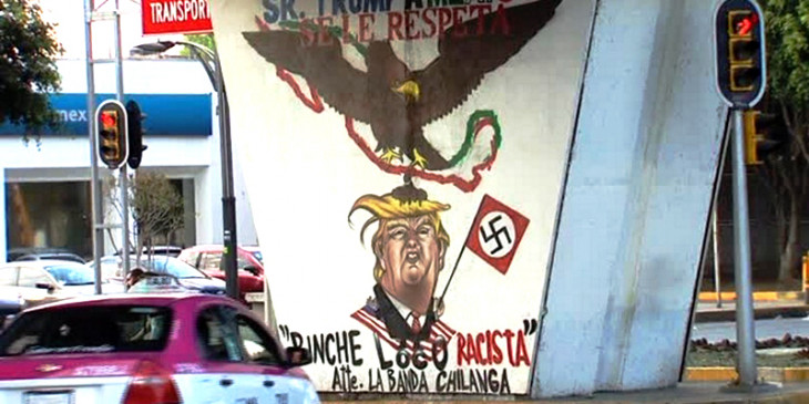 မကၠဆီကို ႏိုင္ငံေရးလႈပ္ရွားသူေတြဟာ အေမရိကန္သမၼတ ေဒၚနယ္ထရမ့္ရဲ႕ လူဝင္မႈႀကီးၾကပ္ေရး မူဝါဒကို ရည္ညႊန္းတဲ့ ဂရပ္ဖစ္တီတခုကို မကၠဆီကိုၿမိဳ႕ရဲ႕ ခံုးတံတားတခုမွာ သ႐ုပ္ေဖာ္ ေရးဆြဲခဲ့ၾကပါတယ္။