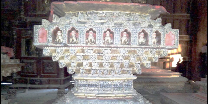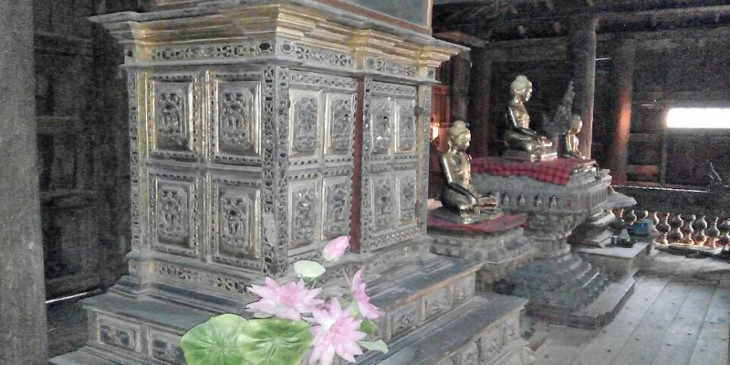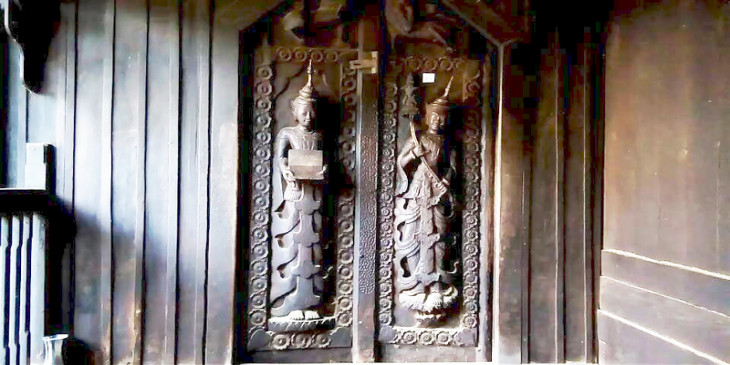 ေရွးေဟာင္းေက်ာင္းႀကီးထဲမွာ ဗုဒၶဝင္ဇာတ္ေတာ္ ႐ုပ္ႂကြပန္းပုလက္ရာ၊ ကႏုတ္ပန္းေတြ၊ ေက်းပုရပိုက္ေတြ၊ ေပစာေတြ၊ ဆံေတာင္ေဝွးေတြ၊ ရဲြလုံးေတြ၊ ပန္းပုထြင္းေသတၱာေတြ၊ သံမပါဘဲ သစ္သားထြင္းတံခါးေတြ ရွိေနတာပါ။