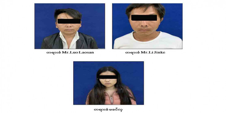အဲဒီမွာ တာခ်ီလိတ္ၿမိဳ႕နယ္ေန အသက္ ၁၅ ႏွစ္အရြယ္ ျမန္မာမိန္းကေလးတဦးနဲ႔ သရက္ပင္ရြာေန မခင္လွ(၁၈)ႏွစ္၊ မခင္လွရဲ႕ ခင္ပြန္း တ႐ုတ္ႏိုင္ငံသား Mr.Li Jinke (၃၁)ႏွစ္၊ မုန္းခမ္းခၽြန္ၿမိဳ႕၊ နာလင္းရြာ၊ တ႐ုတ္ႏိုင္ငံေနသူနဲ႔ အသက္ ၃၃ ႏွစ္အရြယ္ Mr.Luo Laosan တို႔ကို ေတြ႔ရွိၿပီး တပ္ဖြဲ႔စိတ္႐ံုးကို ေခၚေဆာင္ စစ္ေဆးခဲ့ပါတယ္။