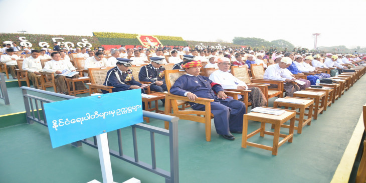 စစ္ေရးျပအစီအစဥ္ေတြကုိေတာ့ ဒီကေန႔မနက္က ပံုမွန္အတိုင္းဆက္လက္က်င္းပခဲ့ၿပီး တပ္မေတာ္ ကာကြယ္ေရးဦးစီးခ်ဳပ္ကုိယ္စား ဒုတိယ တပ္မေတာ္ကာကြယ္ေရးဦးစီးခ်ဳပ္ ကာကြယ္ေရး ဦးစီးခ်ဳပ္(ၾကည္း) ဒုတိယဗုိလ္ခ်ဳပ္မႉးႀကီး စုိး၀င္းတက္ေရာက္ခဲ့ပါတယ္။