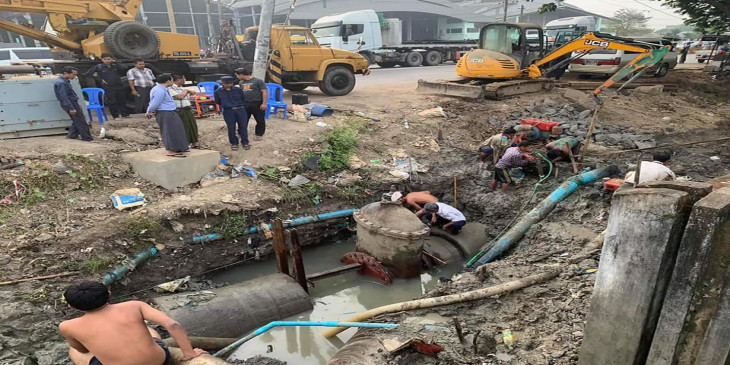 ပိုက္လိုင္းယိုစိမ့္မႈ ျပဳျပင္ေနသျဖင့္ ရန္ကုန္ ၁၀ ၿမဳိ႕နယ္တြင္ေရျပတ္
