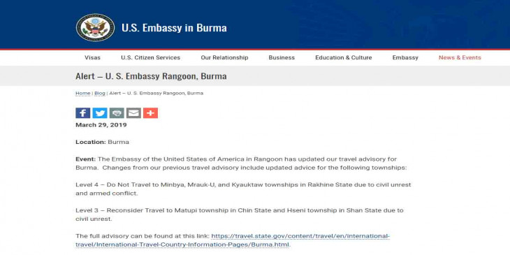 ေျမာက္ဦးၿမိဳ႕နယ္ကုိ ခရီးမသြားသင့္ေၾကာင့္ အေမရိကန္သံ႐ုံး ထုတ္ျပန္