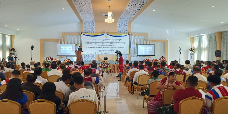 မတ္ ၃၀ ရက္မနက္ပိုင္းက ဘားအံၿမိဳ႕၊ ဇဲြကပင္သဘာဥယ်ာဥ္ဟိုတယ္မွာ ျပဳလုပ္တဲ့ ပစ္ခတ္တိုက္ခိုက္မႈရပ္စဲေရး လုပ္ငန္းစဥ္တြင္ ယုံၾကည္မႈ တည္ေဆာက္ျခင္း၏အေရးႀကီးေသာ အခန္းက႑(CBMs)ေခါင္းစဥ္နဲ႔ စပ္လ်ဥ္းတဲ့ ပညာရွင္စကား၀ိုင္းမွာ တပ္မေတာ္ဘက္က ခြဲမထြက္ရဆိုတဲ့ အခ်က္တခ်က္ပါ၀င္လာတာနဲ႔ ပတ္သက္ၿပီး တက္ေရာက္လာသူရဲ႕ ေမးျမန္းမႈကို ျပန္လည္ေျဖဆိုခဲ့တာပါ။