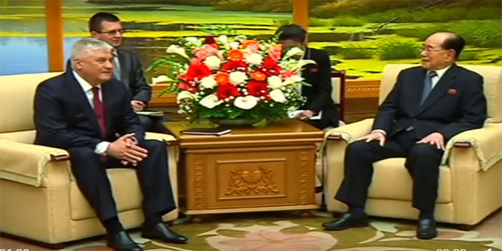 ေျမာက္ကိုရီးယား ျပည္သူ႔လႊတ္ေတာ္ အၿမဲတမ္းေကာ္မတီဥကၠ႒ ကင္မ္ယြန္းနမ္၊ ျပည္သူ႔လံုၿခံဳေရးဝန္ႀကီး ခ်ိဳးပုအီးလ္တို႔နဲ႔ ႐ုရွ ျပည္ထဲေရးဝန္ႀကီးတို႔ဟာ မန္စုေဒး ညီလာခံခန္းမထဲမွာ ေတြ႔ဆံုခဲ့ၾကတယ္လို႔ KCNA သတင္းဌာနက ေျပာပါတယ္။