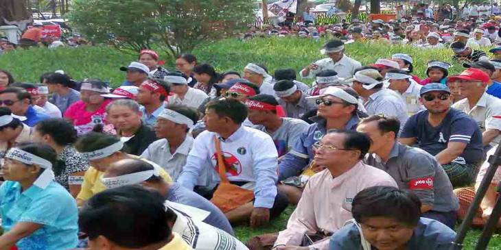 ဖြဲ႔စည္းျပင္ဆင္ေရး ေထာက္ခံ ေဟာေျပာပြဲမွာ စာေရးဆရာထင္လင္းဦးနဲ႔ ဗိုလ္ႀကီးေဟာင္း ေနမ်ိဳးဇင္တို႔ကို ေဟာေျပာခြင့္မေပးဖုိ႔ သံဃာေတြက ေျပာပါတယ္။
