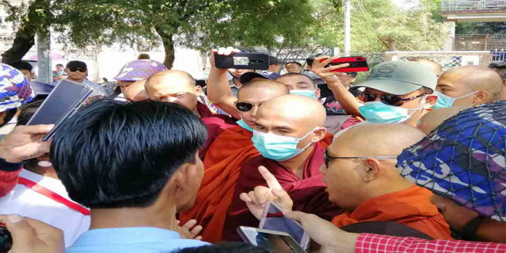 လာကန္႔ကြက္သူ ဘုန္းႀကီးတပါးက “ဦးဇင္းတို႔က အေျခခံဥပေဒ ျပင္ဆင္ေရးကို ကန္႔ကြက္တာ မဟုတ္ဘူး။ ဒီ ၂ ေယာက္ကိုပဲ လာကန္႔ကြက္တာ” လို႔ ေျပာပါတယ္။