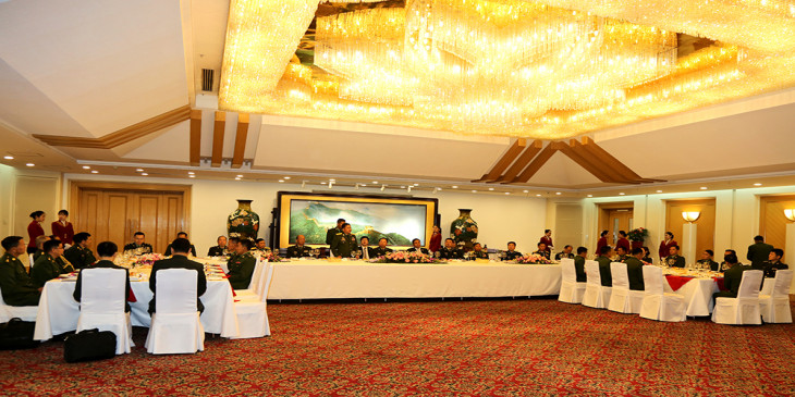 တ႐ုတ္ႏုိင္ငံ ပူးတြဲစစ္ဦးစီးဌာန စစ္ဦးစီးခ်ဳပ္ ဗိုလ္ခ်ဳပ္ႀကီး လီဇိုခ်န္းကလည္း တပ္မေတာ္ႏွစ္ရပ္အၾကား မဟာဗ်ဴဟာေျမာက္ပူးေပါင္းေဆာင္ရြက္မႈ၊ လုံၿခဳံေရးပူးေပါင္း ေဆာင္ရြက္မႈေတြကို အတူၫႇိႏႈိင္းေဆာင္ရြက္သြားဖို႔၊ ႏုိင္ငံတကာ ဆက္ဆံေရးဌာနအခ်င္းခ်င္း ပူးေပါင္းေဆာင္ရြက္မႈတုိးျမႇင့္ဖို႔၊ ေဆးဘက္ဆုိင္ရာ ပူးေပါင္းေဆာင္ရြက္မႈျမႇင့္တင္ဖို႔၊ စက္႐ုံ၊ အလုပ္႐ုံေတြနဲ႔ ကုန္သြယ္မႈတုိးျမႇင့္ဖို႔နဲ႔ အျပည္ျပည္ဆုိင္ရာပူးေပါင္း ေဆာင္ရြက္မႈမ်ားျမႇင့္တင္ဖို႔ စတဲ့ နယ္ပယ္(၅) ခုကို တုိးျမႇင့္ ေဆာင္ရြက္သြားလုိတယ္လို႔ ေျပာပါတယ္။