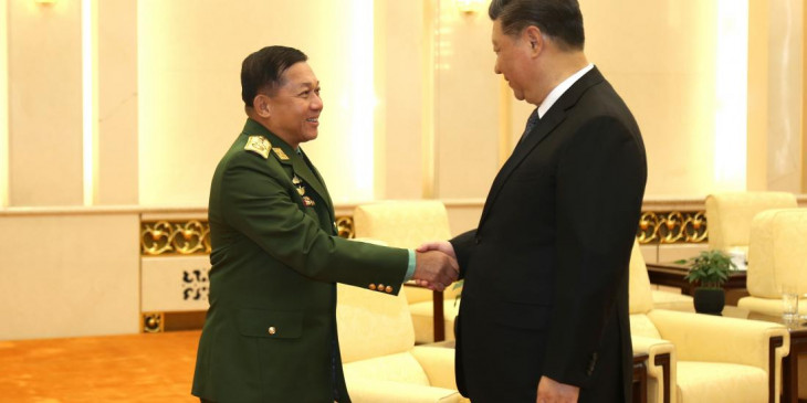 ဗုိလ္ခ်ဳပ္မႉးႀကီး မင္းေအာင္လႈိင္ေခါင္းေဆာင္တဲ့ ျမန္မာကိုယ္စားလွယ္အဖြဲ႔ဟာ ဧၿပီလ ၉ ရက္ေန႔ကတည္းက တ႐ုတ္ႏိုင္ငံမွာ ခ်စ္ၾကည္ေရးခရီးေရာက္ရိွေနတာ ျဖစ္ၿပီး တ႐ုတ္သမၼတ ရွီက်င့္ဖ်င္နဲ႔ ဗိုလ္ခ်ဳပ္မႉးႀကီး မင္းေအာင္လိႈင္တို႔ရဲ႕ ခုတႀကိမ္ေတြ႕ဆံုမႈဟာ ၅ ႀကိမ္ေျမာက္တယ္လို႔ တပ္မေတာ္ ထုတ္ျပန္ခ်က္အရ သိရပါတယ္။
