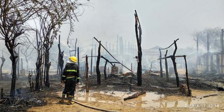 ေခ်ာက္ၿမဳိ႕နယ္၊ အံုးျမားရြာသစ္ေက်းရြာတြင္ မီးေလာင္