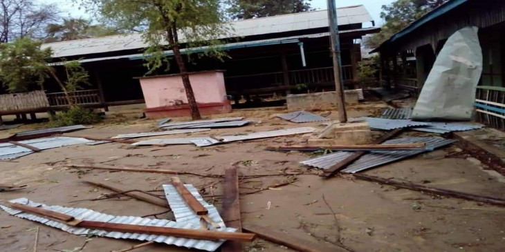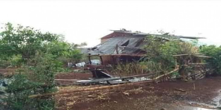 ေက်းရြာ ၁၁ ရိွ လူေနအိမ္ ၄ လံုး ၿပိဳက်တာ၊ စာသင္ေက်ာင္းဝန္းရိွ ပင္မ စာသင္ေဆာင္ နဲ႔ ဆရာမေတြ ေနအိမ္ ၆ လံုး အမိုးလန္ပ်က္စီးၿပီး ဘုန္းႀကီးေက်ာင္း ၄ ေက်ာင္း အမိုးလန္ပ်က္စီးတာ နဲ႔ လူေနအိမ္အေဆာက္ဦ ၉၉ လံုး သြပ္မိုး၊ ထရံကာေတြ ပ်က္စီးဆံုး႐ႈံးခဲ့တာပါ။