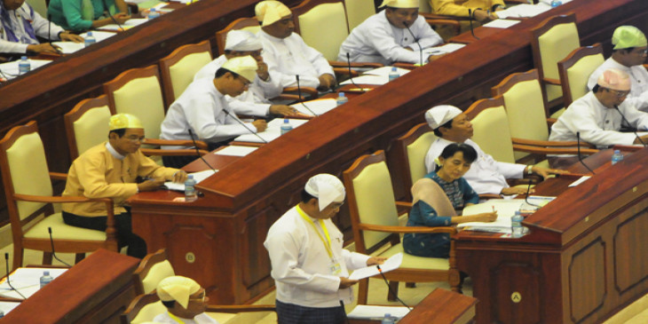ေဒၚေအာင္ဆန္းစုၾကည္ ဦးေဆာင္တဲ့ တရားဥပေဒ စိုးမိုးေရးနဲ့ တည္ျငိမ္ေအးခ်မ္းေရး ေကာ္မတီက ေဆြးေနြးဆံုးျဖတ္ျပီး ပန္းတေနာ္ျမို့နယ္က ဦးေမာင္ေမာင္ဥာဏ္ တင္သြင္းတဲ့ ရခုိင္အေရးနဲ့ ပတ္သက္တဲ့ အေရးၾကီးအဆိုကို အမတ္ ၁၀ ဦးက ေထာက္ခံေဆြးေနြးခဲ့ေပမယ့္ ျပည္သူ့လြွႊတ္ေတာ္ဥကၠ႒ သူရ ဦးေ႐ြွႊမန္းက လြွႊတ္ေတာ္က မွတ္တမ္းတင္ေစာင့္ၾကည့္သြားမွာ ျဖစ္ေၾကာင္း ဆံုးျဖတ္ခဲ့ပါတယ္။