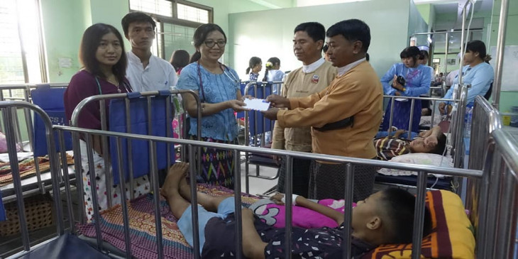 ေဆးကုသမႈခံယူေနရတဲ့ ကေလးေတြကို တိုင္းအစိုးရအဖြဲ႔ဝင္ လူမႈေရးဝန္ႀကီး ေဒါက္တာေဇာ္ဝင္းနဲ႔ ဇနီး၊ ျပည္သူ႔လႊတ္ေတာ္ကိုယ္စားလွယ္ ဦးညြန္႔ေအာင္၊ လူမႈဝန္ထမ္း ဦးစီးဌာနက တာဝန္ရွိသူေတြ၊ ကုတင္ ၅၀၀ ေဆး႐ုံအုပ္ႀကီးနဲ႔ ဆရာဝန္ေတြ သြားေရာက္ၾကည့္ရႈ့ စစ္ေဆးကာ လက္ေဆာင္ပစၥည္းနဲ႔ ေထာက္ပံ့ေငြေတြ ေပးအပ္ခဲ့ပါတယ္။
