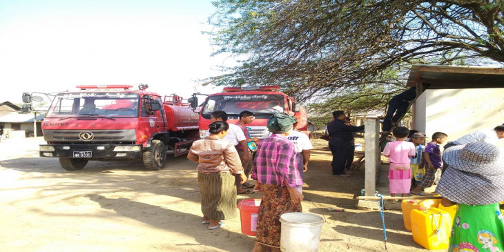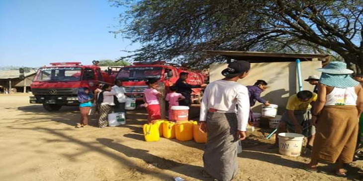 မလႈိင္မီးသတ္ ဦးစီး ဦးေဇယ်ာေအာင္က "ဒီေန႔ေတာ့ မီးသတ္ကားနဲ႔ ေရဂါလန္ ၅ ေထာင္ ပုိ႔ေပးရတယ္။ ေသာက္သုံးေရ အလႉရွင္ေတြက အဲရြာကုိ ပို႔ေပးပါလုိ႔ အကူအညီ ေတာင္းပါတယ္။ ရြာမွာ ေရငန္ေတြေတာ့ ရွိတယ္၊ ထမင္းဟင္းခ်က္ေရ၊ ေသာက္ေရ ျပတ္လပ္တာပါ" လုိ႔ ဒီဗီြဘီကုိ ေျပာပါတယ္။