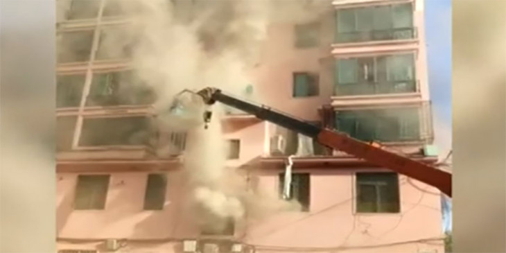အဲဒီခိ်န္မွာ မီးေလာင္တဲ့ေနရာနဲ႔ မီတာ ၃၀၀ အကြာမွာရွိတဲ့ ကရိန္းေမာင္းသူ လန္ခ်င္းဇန္ဟာ ကရိန္းျခင္းကုိ တိုက္ခန္းသုံးလႊာထိ ေျမႇာက္တင္ၿပီး သားအမိႏွစ္ေယာက္ကုိ ကယ္တင္ခဲ့ပါတယ္။