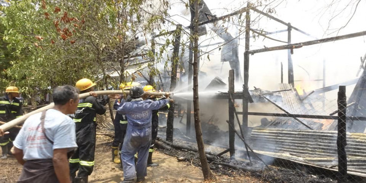 မလိႈင္ၿမိဳ႕နယ္တြင္ လ်ွပ္စစ္ေရေႏြးအုိး အပူလြန္ကဲရာက အေဆာက္အဦ ၄လုံး မီးေလာင္
