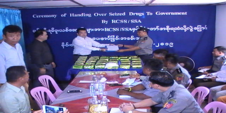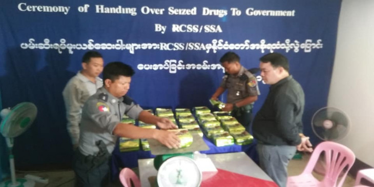 RCSS မူးယစ္ေဆးဝါးတိုက္ဖ်က္ေရးဌာနႀကီးမႉး ဒုဗိုလ္မႉးႀကီးစုိင္းဟန္က “က်ေနာ္တို႔ တပ္မဟာ (၇၂၇) လက္ေအာက္ခံ တပ္ရင္း (၄၅၃)က နယ္ေျမလႈပ္႐ွားေနတ့ဲ အဖြ႔ဲငယ္တဖြဲ႔နဲ႔ တားဆီးစစ္ေဆးရာကေန မူးယစ္ေဆးဝါးသယ္ေဆာင္လာတ့ဲ အဖြ႔ဲနဲ႔ ထိေတြ႔ ပစ္ခတ္မႈျဖစ္ၿပီး ဒီပစၥည္းေတြကုိ သိမ္းဆည္းရမိခ့ဲၿပီး ႏိုင္ငံေတာ္အစုိးရကုိလႊဲအပ္ေပးတာပါ" လို႔ ေျပာပါတယ္။