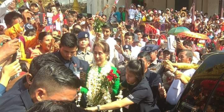 ေဒၚေအာင္ဆန္းစုၾကည္ မန္းစက္ေရႊစက္ေတာ္ ေျခေတာ္ရာ ၂ ဆူကုိ ဖူးေျမာ္