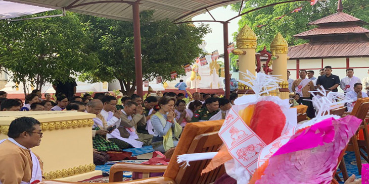 ဗိုလ္ခ်ဳပ္မိဘမ်ား တည္ထားသည့္ ေစတီသံုးဆူကို ေဒၚေအာင္ဆန္းစုၾကည္ ဖူးေျမာ္ၾကည္ညိဳ