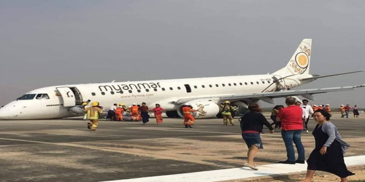 ျမန္မာအမ်ိဳးသား ေလေၾကာင္းလိုင္းက Embraer ေလယာဥ္ဟာ မႏၱေလး တံတားဦးေလဆိပ္ကုိ ဆင္းသက္စဥ္ အခုလုိ ျဖစ္ခဲ့တာျဖစ္ၿပီး ေလယာဥ္ေပၚမွာ လူ ၈၂ ဦး လုိက္ပါသြားၿပီး ထိခုိက္ဒဏ္ရာရသူ မရွိဘူးလုိ႔ သိရပါတယ္။