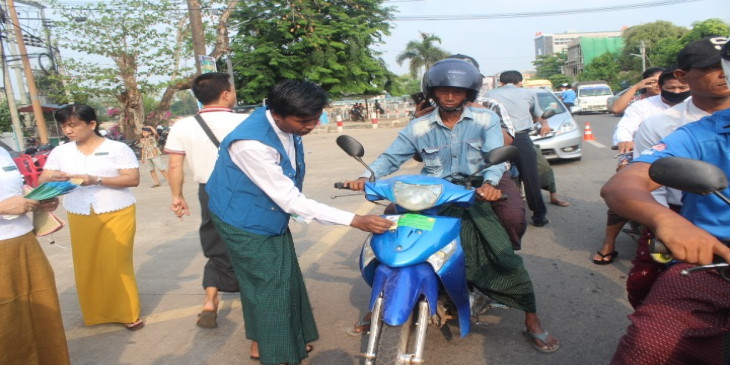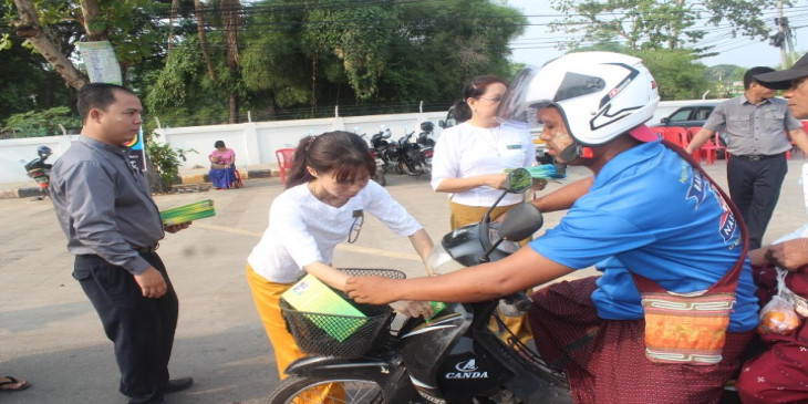 ပဲခူးတုိင္း ပဥၥမအႀကိမ္ေျမာက္ ယာဥ္အႏၱရာယ္၊ လမ္းအႏၱရာယ္ကင္းရွင္းေရး ရက္သတၱပတ္ လႈပ္ရွားမႈမွာ “မူးလွ်င္ မေမာင္းနဲ႔ ေမာင္းရင္ မမူး နဲ႔၊ ယာဥ္ေမာင္းေနစဥ္ ထိုင္ခံု ခါးပတ္ပတ္ပါ၊ ယာဥ္ေမာင္းေနစဥ္ အရွိန္ေလွ်ာ့ေမာင္းပါ၊ ဆိုင္ကယ္ေမာင္းလွ်င္ ဦးထုတ္ ေမးသိုင္းႀကိဳးတပ္ၿပီးမွ ေမာင္းပါ” စတဲ့ လက္ကမ္းစာေဆာင္ေပါင္း ၇၄၀၀၀ နဲ႔ စတစ္ကာ ၄၂၆၀၀ တို႔ကို တာ၀န္ရွိသူေတြနဲ႔ လူမႈအဖြဲ႔အစည္းေတြက ျဖန္႔ေ၀ခဲ့ၾကတယ္လုိ႔ သိရပါတယ္။