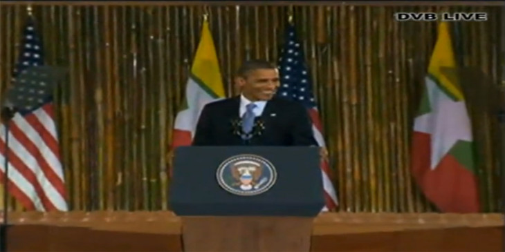 ျမန္မာနိုင္ငံ...မဂၤလာပါလို့ ပီပီသသနႈတ္ဆက္ျပီး အေမရိကန္သမၼတ အိုုဘားမားဟာ ရန္ကုန္တကၠသိုလ္ ဘြဲ့နွင္းသဘင္ခန္းမမွာ ေျပာၾကားခဲ့တဲ့ မိန့္ခြန္း အသံဖုိင္မွာနားဆင္နုိင္ပါျပီ။