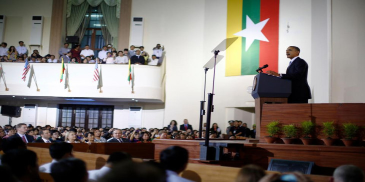 အေမရိကန္သမၼတ ဘားရတ္အိုဘားမားဟာ နို၀င္ဘာ ၁၉ ရက္ေန့ မြန္းလြဲပိုင္းက ရန္ကုန္တကၠသိုလ္၊ ဘြဲ့နွင္းသဘင္ခန္းမမွာ ျမန္မာျပည္နဲ့ သက္ဆိုင္တဲ့ သမိုင္း၀င္ မိန့္ခြန္းတရပ္ကို မိနစ္ ၃၀ ေက်ာ္ၾကာ ေျပာၾကားသြားခဲ့ပါတယ္။