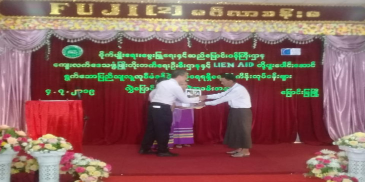 ေက်းလက္ေဒသဖြံ႔ၿဖိဳးေရး ဦးစီးဌာနနဲ႔ Lien Aid အဖြဲ႔ ပူးေပါင္းေဆာင္ရြက္တဲ့ ျပည္သူလူထု စီမံခန္႔ခြဲတဲ့ ေရရရွိေရး စီမံကိန္းလုပ္ငန္းေတြ လႊဲေျပာင္းေပးအပ္ပြဲကို ဇူလိုင္ ၄ ရက္ေန႔က ေျမာင္းျမၿမိဳ႕ မွာျပဳလုပ္ခဲ့ပါတယ္။