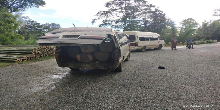 ရဲႏွင့္သစ္ေတာ၀န္ထမ္းမ်ား စီးနင္းလာသည့္ကားကို သစ္ခိုးသမားမ်ားက ဓားကိုင္ေႏွာင့္ယွက္