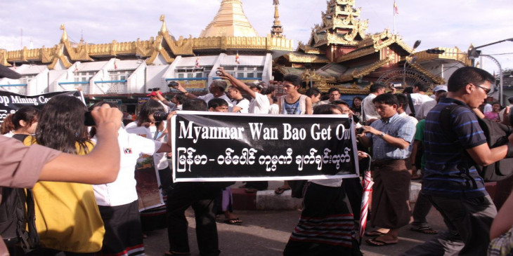 လက္ပန္းေတာင္းေတာင္ ေၾကးနီစီမံကိန္းရပ္တန့္ဖို့ ရန္ကုန္ျမို့မွာ ဆနၵျပသူေတြထဲက ၆ ဦးကို ပန္းဘဲတန္းျမို့နယ္တရား႐ုံးက နိုင္ငံေတာ္အၾကည္ညိုပ်က္ေစမႈနဲ့ တရားစဲြဆိုျပီး အင္းစိန္ေထာင္မွာ ခ်ဳပ္ေနွာင္ထားပါတယ္။
