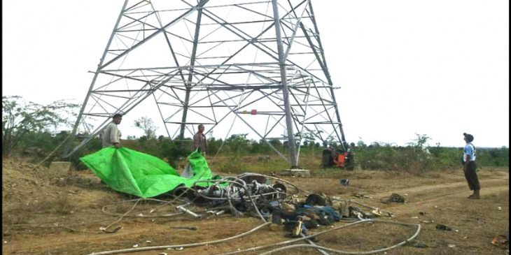 မိတၳီလာ နဲ႔ ေတာင္ငူ 500KV ဓာတ္အားလုိင္းအား တရုတ္ကုမၸဏီတခုက လုပ္ေဆာင္ေနတာျဖစ္ၿပီး တိုင္အမွတ္ ၉၁ မွာ လုိင္းႀကိဳးသြယ္တန္းရာ လုိင္းႀကိဳးေတြ တင္းအားမ်ားျပီး တိုင္မွ မူလီနတ္ေတြ ျပဳတ္ထြက္ ျပိဳက်တာေၾကာင့္ တာဝါတိုင္ေပၚ ေရာက္ေနတဲ့ တ႐ုတ္ႏုိင္ငံသားေတြ ေသဆုံးခဲ့တာပါ။