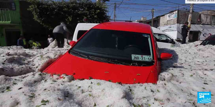 မိုးသည္းထန္စြာရြာသြန္းမႈ၊ မိုးသီးေၾကြက်မႈေတြျပီးေနာက္ မကၠဆီကိုနိုင္ငံ ဂြာဒါလာဂ်ာရာေဒသရဲ႕ လမ္းေတြေပၚမွာ ၿပီးခဲ့တဲ့ ဇူလုိင္ ၁ ရက္က ေရခဲေတြ၊ မိုးသီးေတြနဲ႔ ျပည့္နွက္သြားခဲ့ရပါတယ္။
