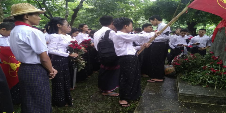 အခု ေအာက္ေမ့ဖြယ္အခမ္းအနားကို တကၠသိုလ္ေက်ာင္းသားမ်ားသမဂၢအဖြဲ႔ေတြ စုေပါင္းၿပီး တံတားျဖဴကေန ရန္ကုန္တကၠသိုလ္ဝင္းထဲက ဗိုလ္ေအာင္ေက်ာ္အုတ္ဂူအထိ ခ်ီတက္ၾကၿပီး ဂါရဝါျပဳ ကဗ်ာေတြ ရြတ္ဆိုခဲ့ၾကပါတယ္။