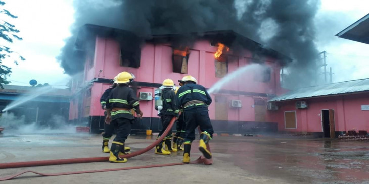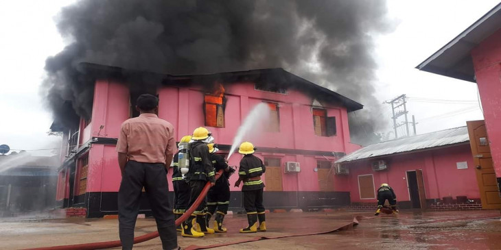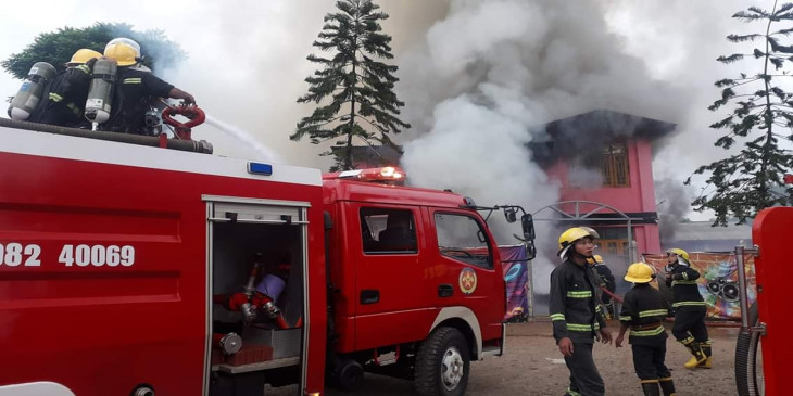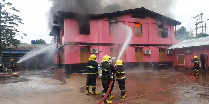 “ မီးစေလာင္တာက ၅ နာရီ ၄၅ မိနစ္လို႔သိရတယ္။ က်ေနာ္တို႔ဆီကို သတင္းေရာက္တာ က ၆ နာရီ ၁၅ မွရတယ္။ အဲဒီနားမွာရွိတဲ့ ေအးရွားေ၀ါဂိတ္က မီးေလာင္တာျမင္လို႔ ဖံုးလွမ္း ဆက္လိုက္တာ။ သိသိခ်င္းက်ေနာ္တို႔ရံုးက မီးသတ္တပ္ဖြဲ႔အင္အား ၂၀ ေက်ာ္ မီးသတ္္ကား ၃ စီး၊ ေရတိုင္ကီကား ၁ စီးနဲ႔ လိုက္သြားပါတယ္။ ဟိုကို ၆ နာရီ ၂၃ မိနစ္မွာေရာက္ၿပီး ၆ နာရီ ၄၅ မိနစ္မွာ လံုး၀ မီးၿငိမ္းသြားပါတယ္။ ထိခိုက္ဒဏ္ရာရသူမရွိဘူး။ အနီးနားပတ္၀န္းက်င္ကို မီးကူးတာမရွိဘူး”