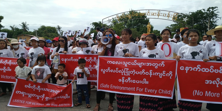 ေနျပည္ေတာ္ Wisdom Hil မူႀကိဳေက်ာင္းက လိင္ပိုင္းဆိုင္ရာ မဖြယ္မရာျပဳက်င့္ခံခဲ့ရတဲ့ ဗစ္တိုးရီးယားအတြက္ တရားမွ်တမႈရရိွေစဖို႔ ဇူလိုင္ ၈ ရက္ေန႔က စစ္ကိုင္းၿမိဳ႕မွာ လူအင္အား ၄၀၀ နီးပါး ဆႏၵထုတ္ေဖာ္ခဲ့ၾကပါတယ္။