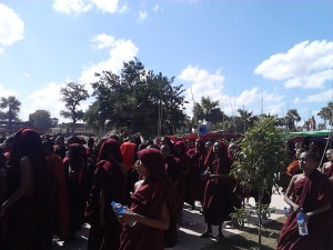 “မေန့ညကတုန္းက ၈ နာရီခြဲေလာက္မွာ ျမန္မာ့အသံက လြွႊင့္တဲ့ တရားမ၀င္ လူထုအုံၾကြမႈ လုပ္တယ္ ေျပာတယ္။ တည္ဆဲဥပေဒအရ အေရးယူရပါလိမ့္မယ္ေပါ့။ ည ၁၂ နာရီေက်ာ္မွာ ထြက္သြားၾကဖို့ေပါ့။ က်မတို့ ႐ြာသူ႐ြာသားေတြနဲ့ သံဃာေတာ္ေတြ အားလုံးက လုံး၀ ဖယ္႐ွားမေပးပါဘူး” လို့ ေျပာပါတယ္။