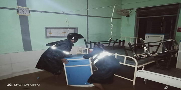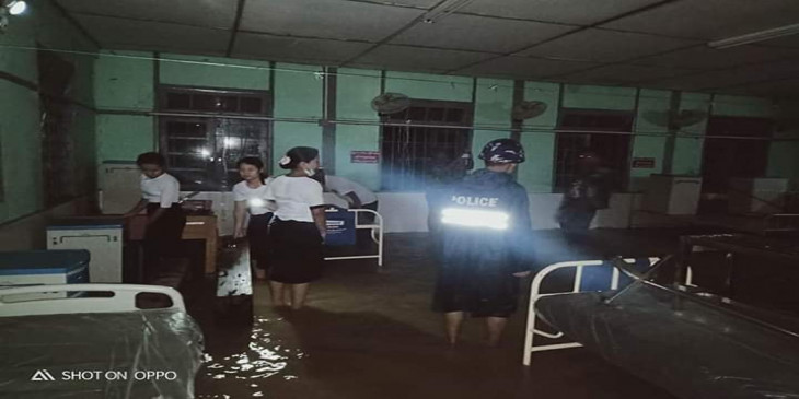 "ေဆးရံုကေျပာင္းေရႊ႕ ေပးခဲ့ရတဲ့ လူနာေတြကိုေရာ တျခားလာျပတဲ့လူနာေတြကိုေရာ ဆရာဝန္နဲ႔ က်န္းမာေရးအဖြဲ႔က ဓမၼာ႐ံုမွာပဲ ကုသမႈေပး ေနပါတယ္။ ေရဝင္ေရာက္မႈဒဏ္ ခံနရတဲ့လူေတြကိုေတာ့ ထမင္းထုပ္ေတြ လိုက္လံေဝေပးထားၿပီး အေရးေပၚတက္ျဖစ္လာရင္ ကယ္ဆယ္ေရးစခန္းကို ေျပာင္းေရႊ႕ၾကဖို႔ ႏိႈးေဆာ္ထားပါတယ္"