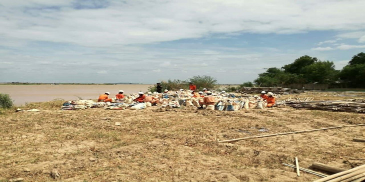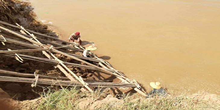 ခ်င္းတြင္းျမစ္ကမ္းပါးၿပဳိက်သျဖင့္ ေရစႀကဳိၿမဳိ႕နယ္၌ ကိုယ္ထူကိုယ္ထေရကာတာ အေရးေပၚတည္ေဆာက္ေန