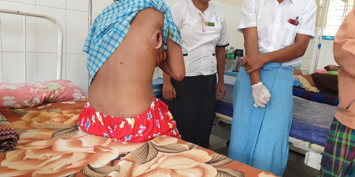 စစ္ကိုင္းတုိင္း၊ မံုရြာၿမိဳ႕ေန အသက္ ၁၈ ႏွစ္အရြယ္ စတိုးဆိုင္၀န္ထမ္း အမ်ိဳးသမီးငယ္တဦး ညႇဥ္းပန္းႏွိပ္စက္ခံခဲ့ရတဲ့ဒဏ္ရာေၾကာင့္ လက္ျပင္မွာ အနာျဖစ္ၿပီး မံုရြာကုတင္ ၅၀၀ ဆံ့ေဆးရံုႀကီးမွာ ခဲြစိပ္ကုသမႈ ခံယူခဲ့ရပါတယ္။