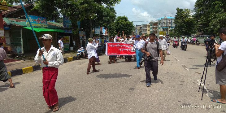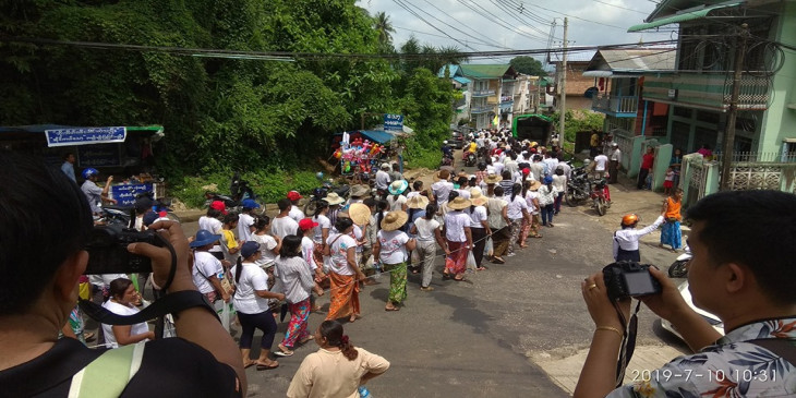 ၿမိတ္ၿမိဳ႕၊ ကန္ဖ်ားကုန္စိမ္းေစ်းေရွ႕ကေနစတင္ၿပီး လူအင္အား ၂၀၀ ေလာက္နဲ႔ လွည့္ေႂကြးေၾကာ္ ဆႏၵျပခဲ့ၾကတာျဖစ္ပါတယ္။