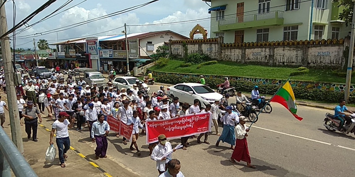ၿမိတ္ၿမိဳ႕၊ ကန္ဖ်ားကုန္စိမ္းေစ်းေရွ႕ကေနစတင္ၿပီး လူအင္အား ၂၀၀ ေလာက္နဲ႔ လွည့္ေႂကြးေၾကာ္ ဆႏၵျပခဲ့ၾကတာျဖစ္ပါတယ္။