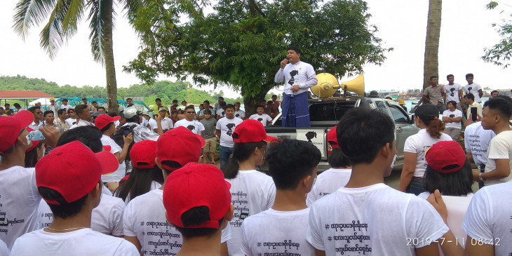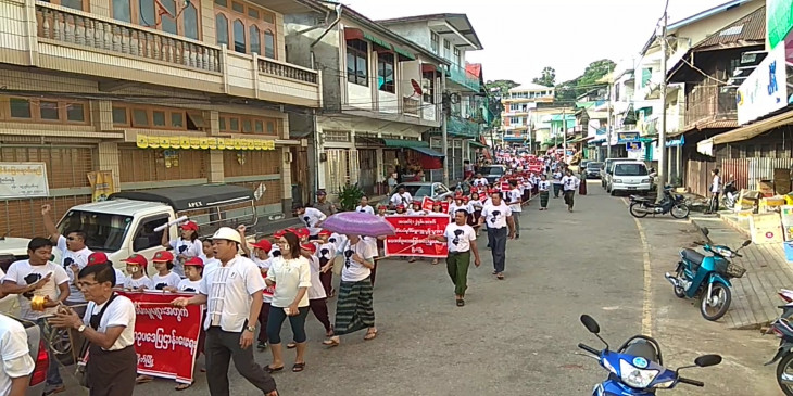 ဒီဆႏၵျပပြဲကို ၿမိတ္ၿမိဳ႕က ျပည္သူေတြ၊ ေက်ာင္းသူ/သားေတြအပါအ၀င္ လူ ၁၀၀၀ ေလာက္ ပူးေပါင္း ပါ၀င္ခဲ့ပါတယ္။