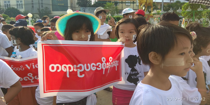 တနသၤာရီတိုင္းတိုင္းေဒသႀကီး ၿမိတ္ၿမိဳ႕မွာ သက္ငယ္မုဒိမ္းမႈ ေသဒဏ္ေပးေရးနဲ႔ ဗစ္တိုးရီးယားအတြက္ တရားမွ်တမႈရရွိေရး Justice for Victoria ဆႏၵျပပြဲကို ဇူလိုင္လ ၁၁ ရက္ေန႔က ျပဳလုပ္ခဲ့ပါတယ္။