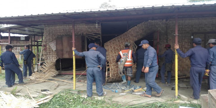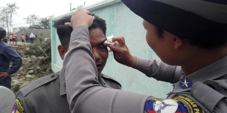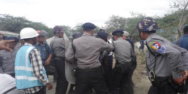 အဓိက႐ုန္းျဖစ္ပြားခ်ိန္မွာ ရဲတပ္ဖြဲ႔က ေသနတ္ ၂ ခ်က္ပစ္ေဖာက္တားျမစ္ခဲ့ရၿပီး စခန္းမႉး အပါအ၀င္ ရဲတပ္သား ၅ ဦးဒဏ္ရရွိခဲ့ကာ က်ဴးေက်ာ္ေနထိုင္သူ ၄ ဦးကိုလည္း ရဲတပ္ဖြဲ႔က ဖမ္းဆီးခဲ့ပါတယ္။