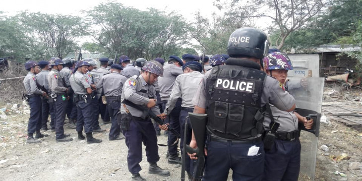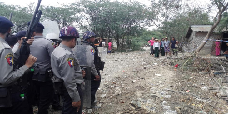 မႏၲေလးတိုင္းေဒသႀကီး၊ ခ်မ္းျမသာစည္ၿမိဳ႕နယ္ ၇၄ လမ္း၊ စိန္ပန္းလမ္းေပၚက ေအာင္ျမင္သူကုမၸဏီပိုင္ ေျမကြက္ေပၚက က်ဴးေက်ာ္အိမ္ေတြကို ဒီေန႔ မနက္က ရွင္းလင္းရာမွာ က်ဴးေက်ာ္ေနထိုင္သူေတြနဲ႔ ရဲတပ္ဖြဲ႔ အဓိက႐ုန္းျဖစ္ပြားခဲ့ပါတယ္။