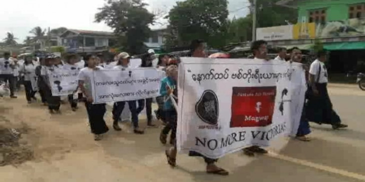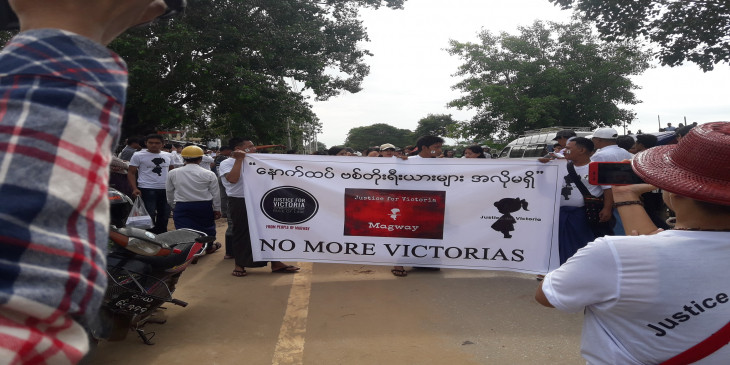 ဗစ္တိုးရီးယားအမႈ တရားမ်ွတမႈ႐ွိေစေရး မေကြးၿမိဳ႕တြင္ ဆႏၵေဖာ္ထုတ္