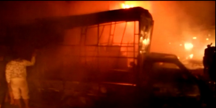 မနၱေလးျမို့ ျပည္ၾကီးတံခြန္ျမို့နယ္ စက္မႈဇုန္႐ွိ ဦး၀င္းျမိုင္ပိုင္ဆိုင္တဲ့ ပိုလီမာေရျမုပ္ေမြ့ယာဂိုေဒါင္ မေန့ည ၁၂ နာရီေလာက္မွာ မီးေလာင္မႈ ျဖစ္ပြားခဲ့ပါတယ္။ မီးေလာင္ကၽြမ္းမႈကုိ မီးသတ္ကား အစီး ၃၀ ေက်ာ္နဲ့ ၂ နာရီေက်ာ္ၾကာေအာင္ ျငိမ္းသတ္ခဲ့ရျပီး မီးေလာင္မႈေၾကာင့္ လိုက္ထရပ္ကား ၂ စီးနဲ့ စုစုေပါင္း ဆံုး႐ႈံးမႈ က်ပ္ေထာင္ခ်ီ႐ွိတယ္လို့ သိရပါတယ္။ မီးေလာင္မႈ ျဖစ္ပြားရတဲ့အေၾကာင္းရင္းကုိ မသိရေသးပါဘူး။