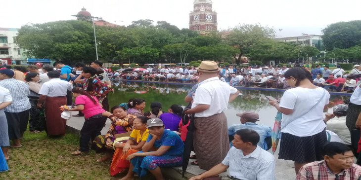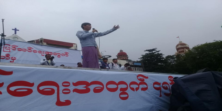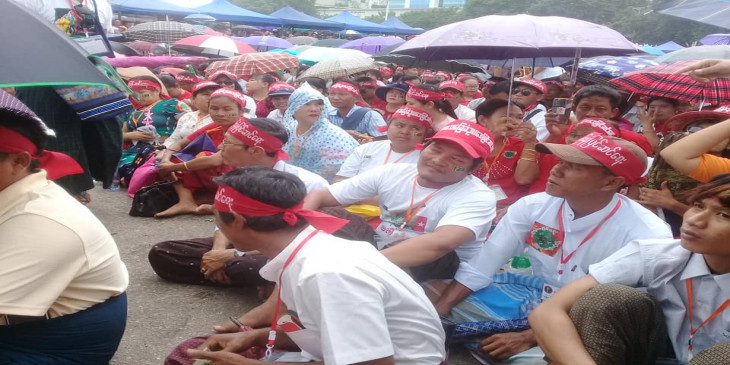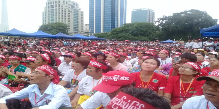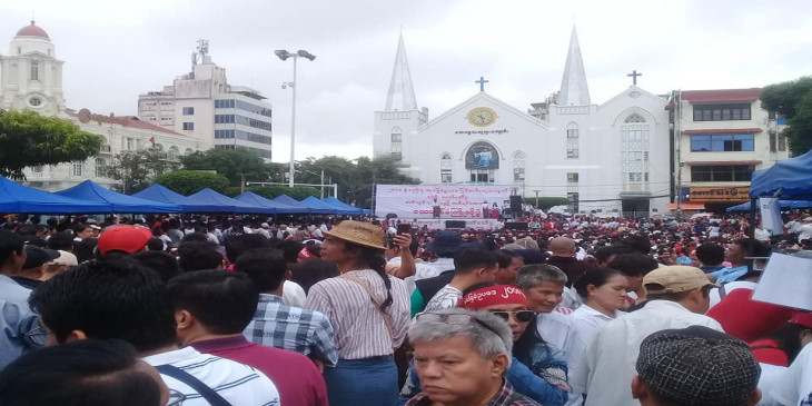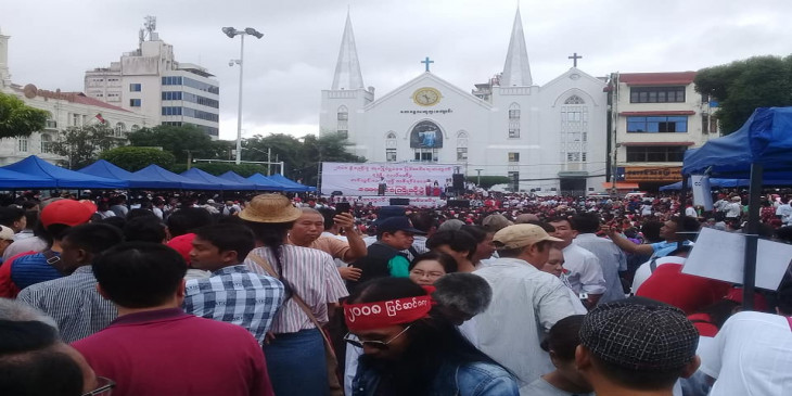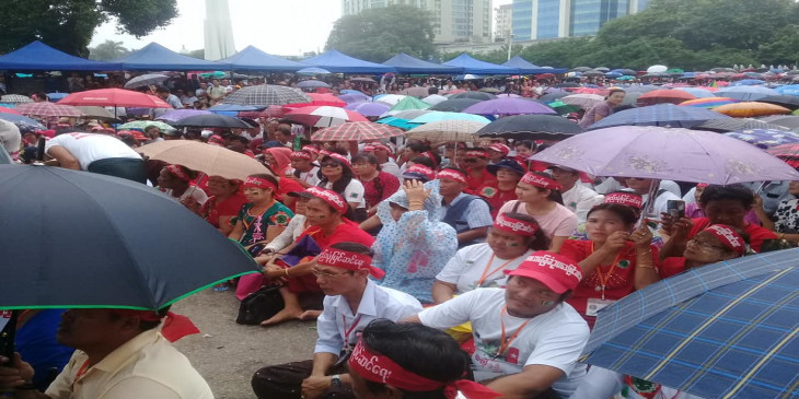 ဖြဲ႔စည္းပံုျပင္ဆင္ေရး လူထုေထာက္ခံပြဲ ရန္ကုန္ၿမိဳ႕ေတာ္ခန္းမေရွ႕တြင္က်င္းပ